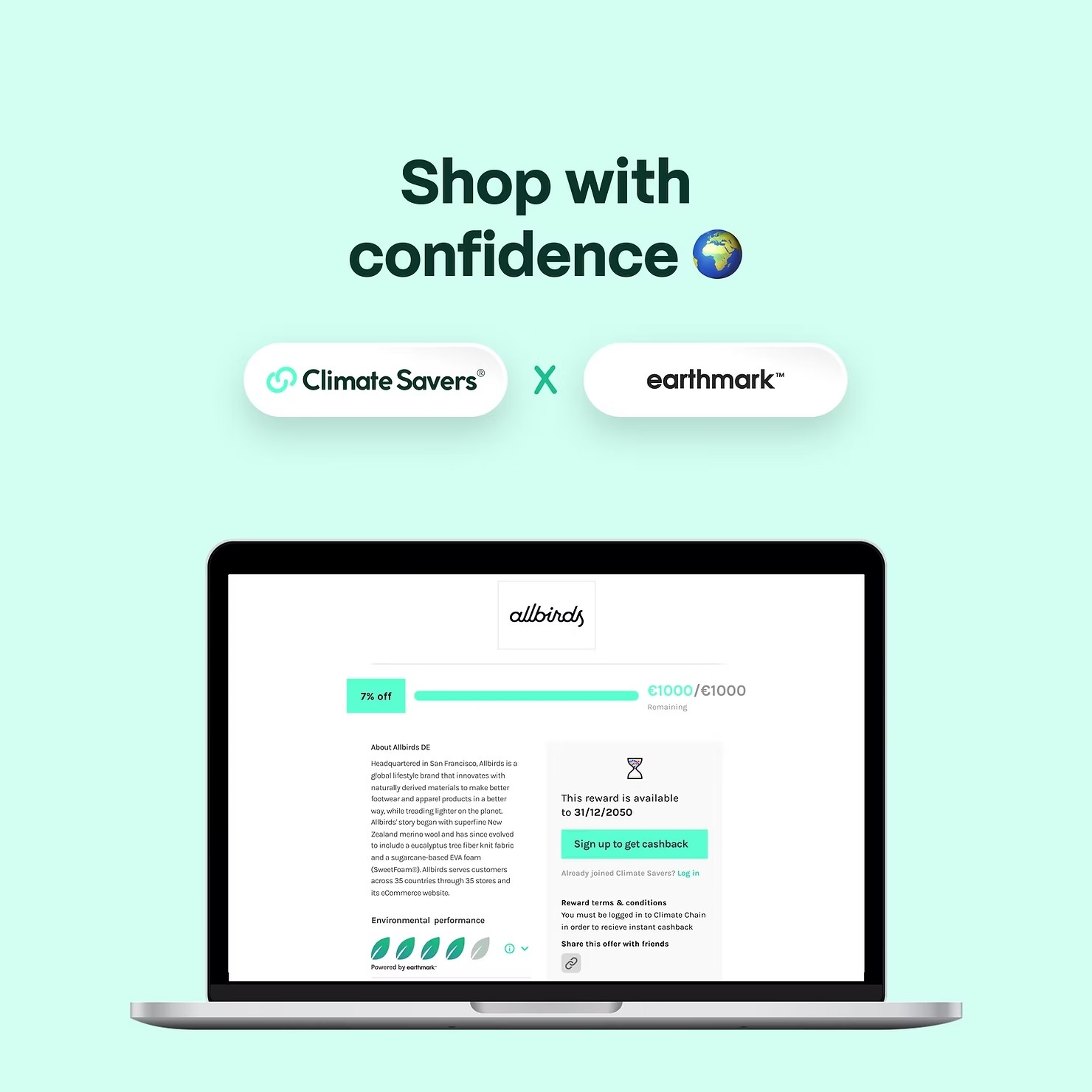 Jack Linnett, Co-founder & CEO at Earthmark, said “It’s great to be partnering with Rory and the team at Climate Savers to show how simple it can be to keep the environment top of mind when choosing where to buy clothes, food, home energy and more.”