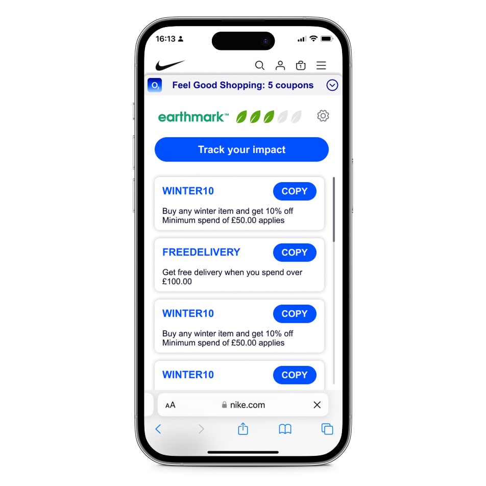 When users spend with qualifying brands, they receive money back which they can contribute to environmental initiatives via Ecologi or Hubbub. By using a leaderboard, O2 has also gamified the experience, with users gaining points and badges for shopping with brands that have an Earthmark of 3 or higher. This has led to a clear boost in orders for high-performing brands, with a 51% increase recorded early on in the rollout. The result is a loyalty experience that builds trust, boosts conversions, and channels eCommerce growth into climate action.